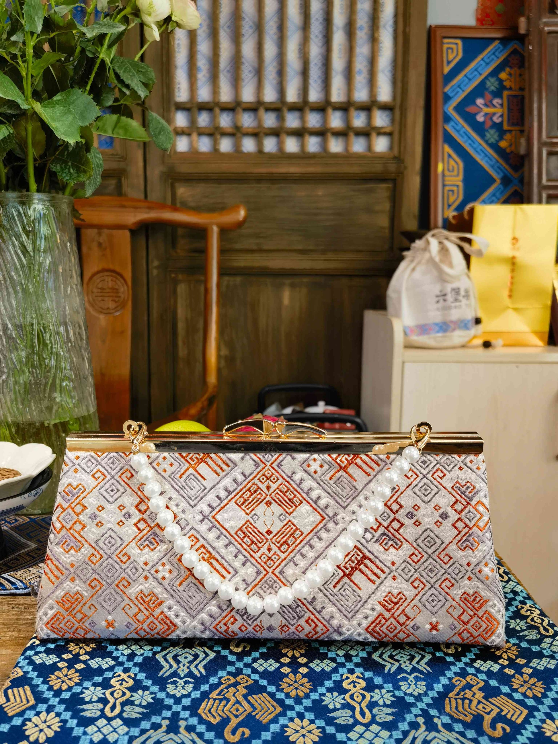 Guangxi Zhuang Brocade Baguette Handbag