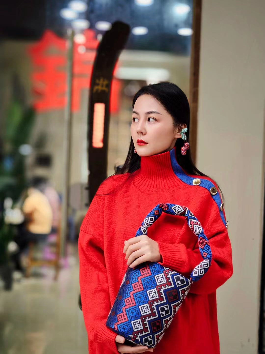 Guangxi Zhuang Brocade Bucket Bag - Large Capacity Commuter