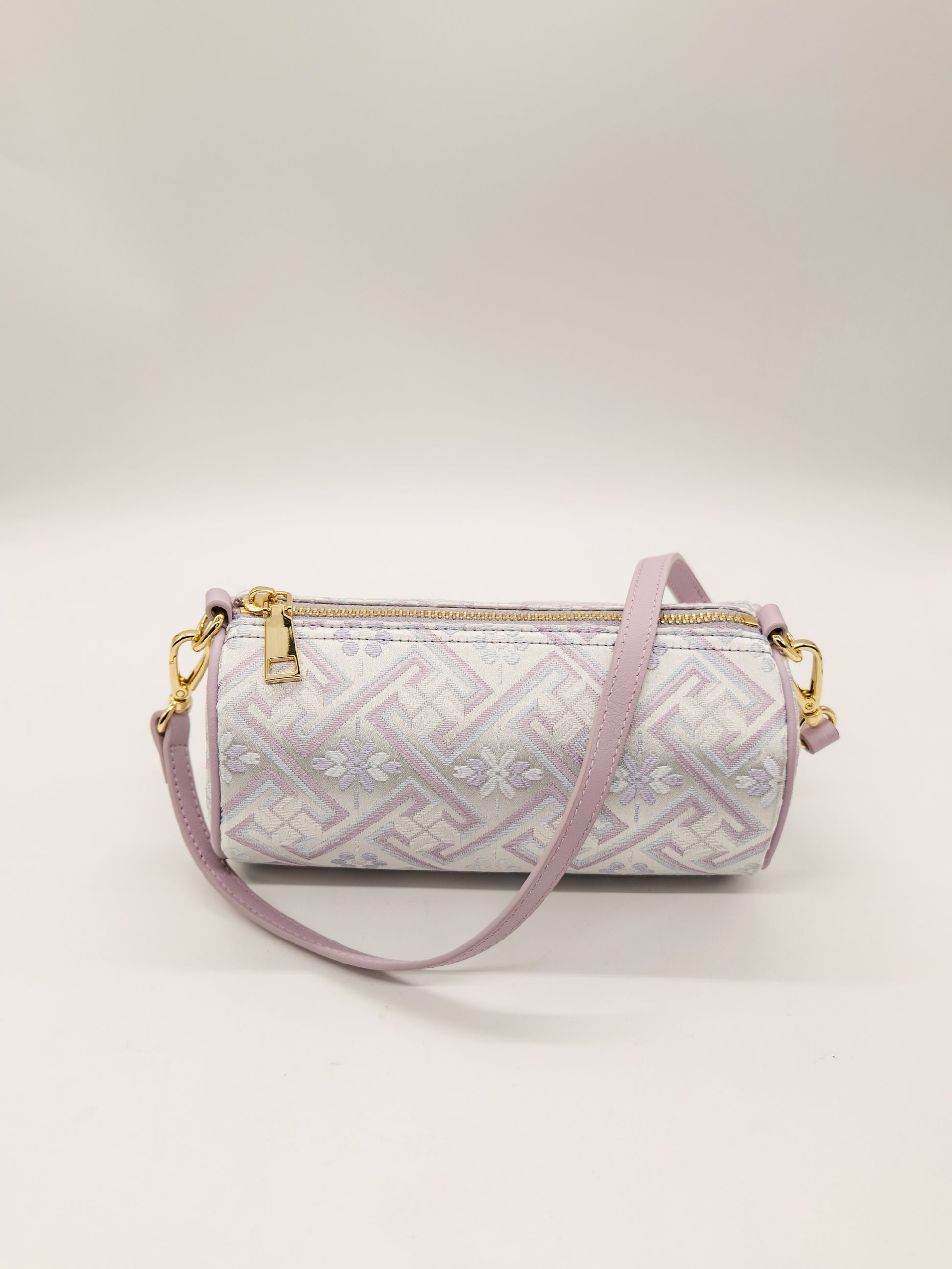 Guangxi Zhuang Brocade Pillow-Style Shoulder Bag with Top-Grain Cowhide Leather